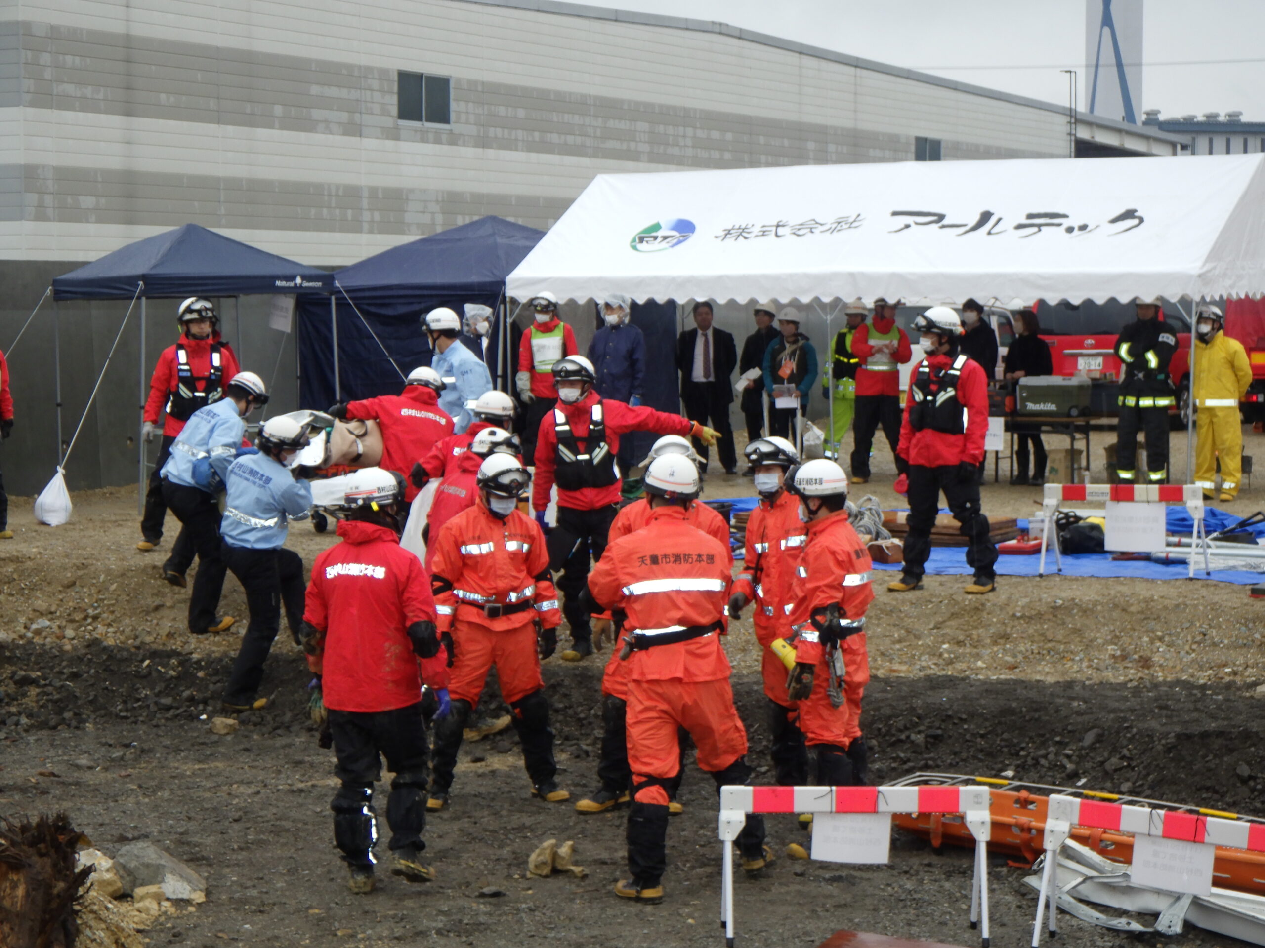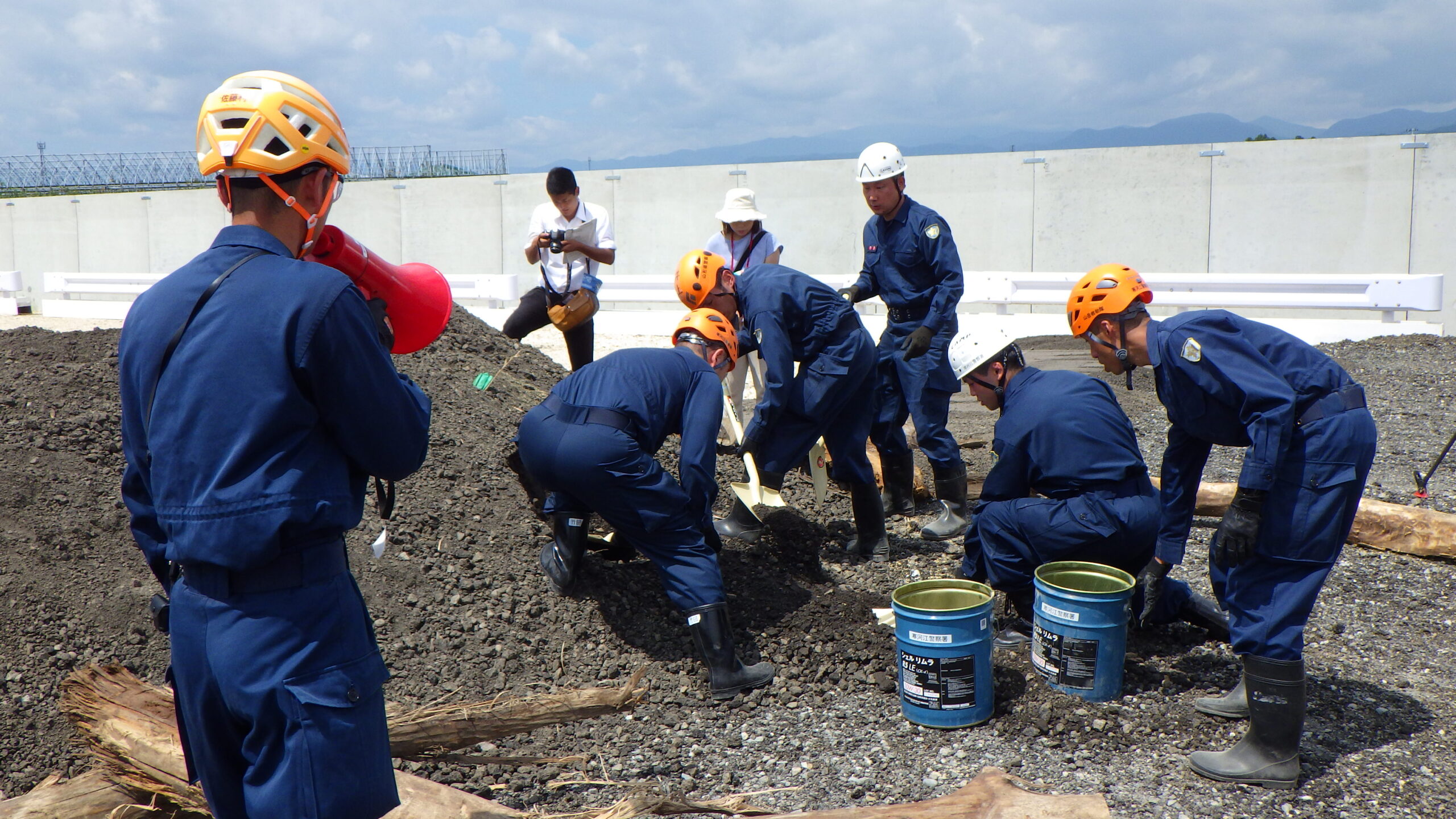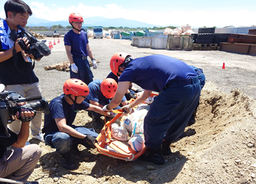 また近年は、災害が多く発生しており、山形県でも被害が出ております。一人でも多くの人命を守る為にも寒河江警察署及び西村山行政組合(消防署)と連携し、弊社敷地内または解体工事の現場にて災害救出訓練を行っております。