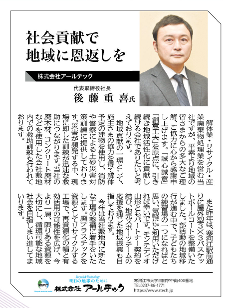廃棄物運搬業及び処理業の両面において山形県より優良業者の認定を頂いております。これからも適正な処理と信頼される企業として、努めて参ります。