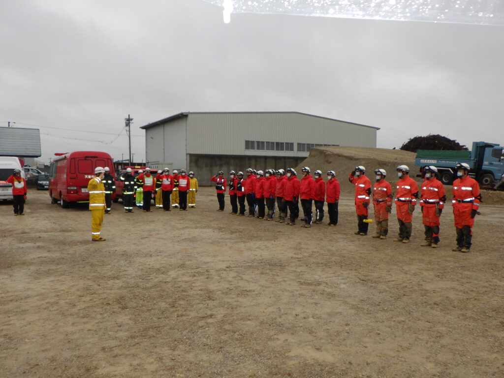 弊社敷地内にて、大雨による大規模な土砂災害を想定した合同訓練を致しました。