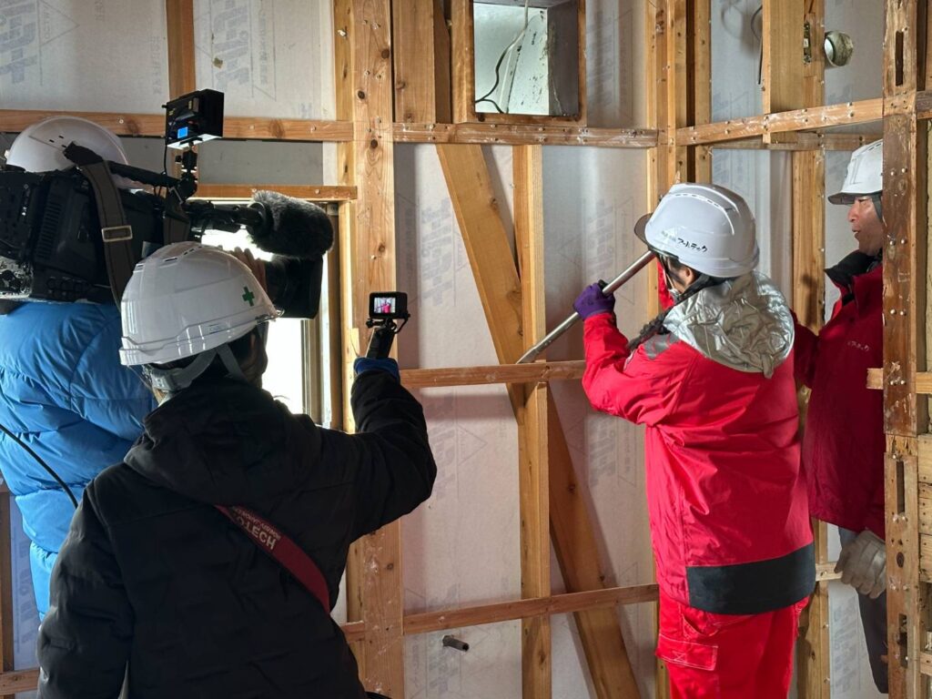 TUYのアナウンサーが社員として1日お仕事体験を行う番組「どよーびぽんち1日社員」に出演し、主に空き家の木くずが木チップへリサイクルされるまでをご紹介させていただきました。