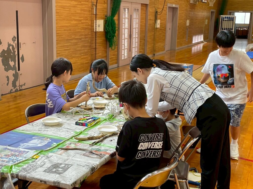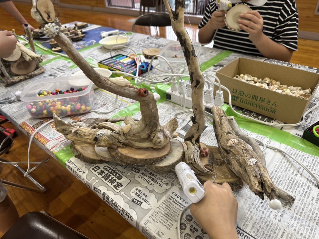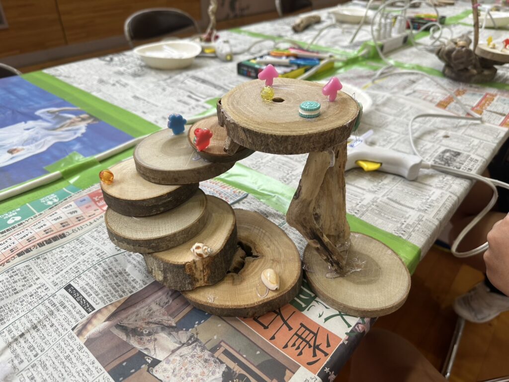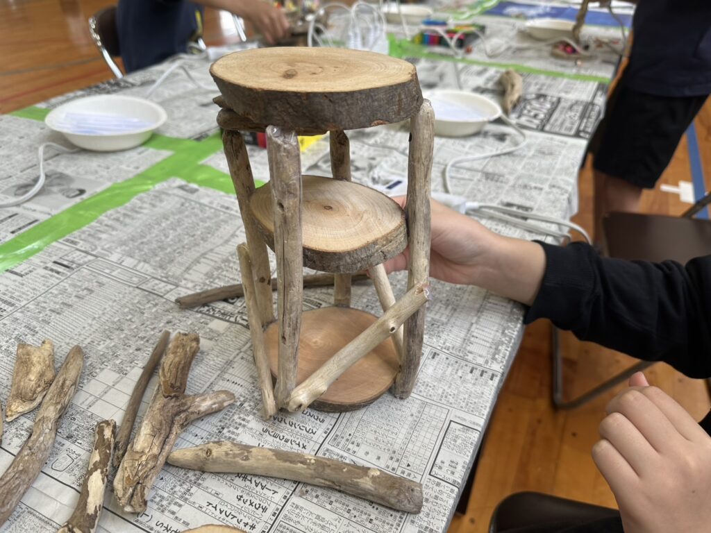 今回も寒河江ダムに流れ着いた流木や、丸太を提供し木工工作に取り組みました。