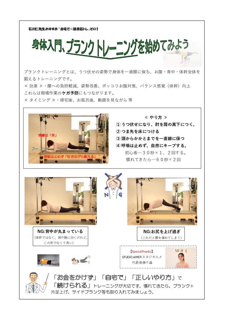 石川先生おすすめのプランクトレーニングを実演頂きました。