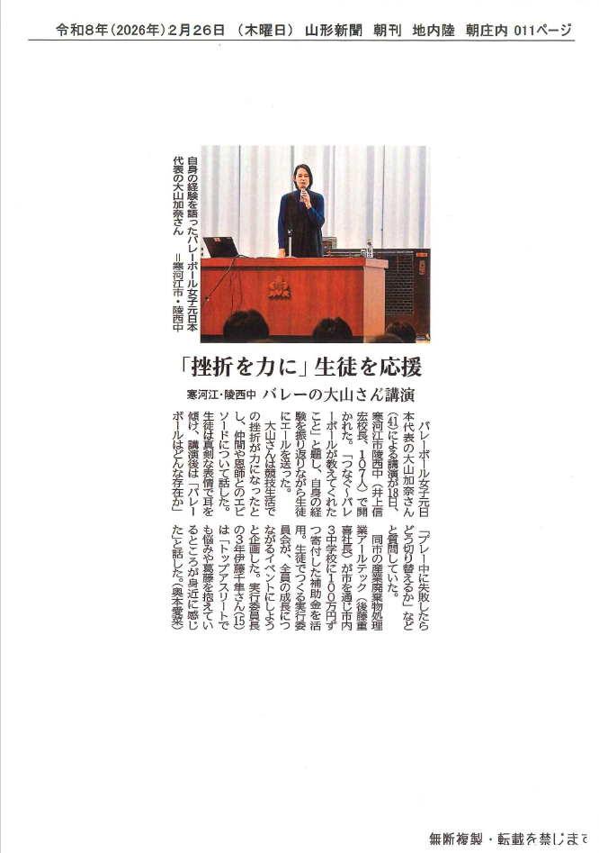 ※令和8年(2026年)2月26日(木曜日) 山形新聞様の朝刊に掲載されています。