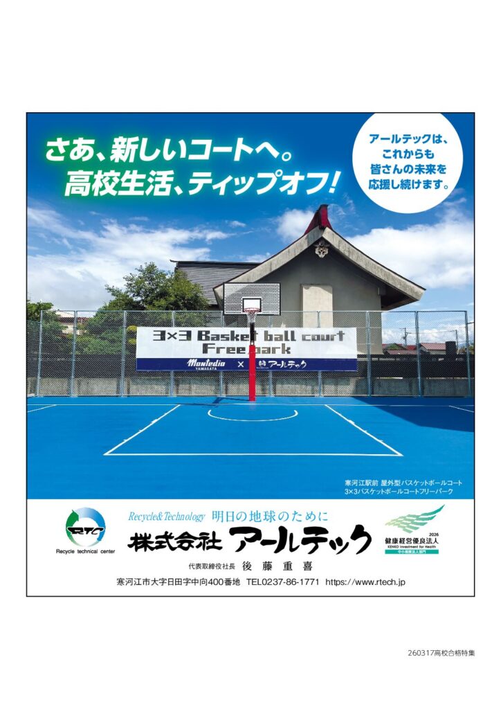山形新聞様の朝刊(2026年03月17日掲載山形新聞高校合格おめでとう特集 等)に、弊社の高校生応援広告が掲載されました。
