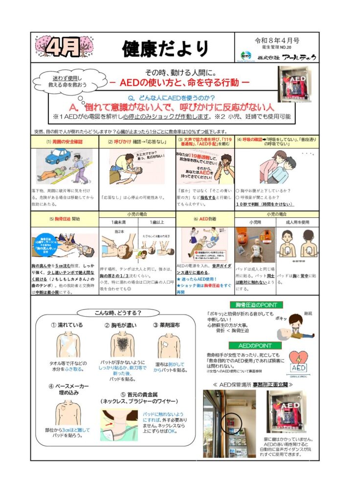 今月のテーマは「AEDの使い方と、命を守る行動』です。